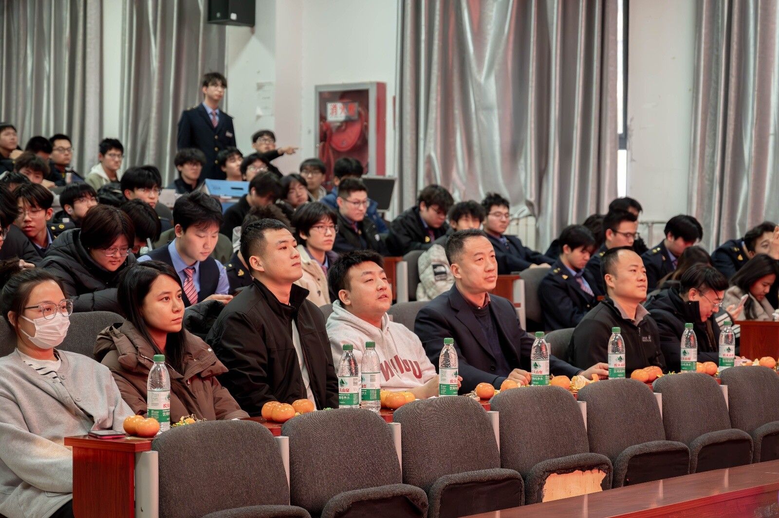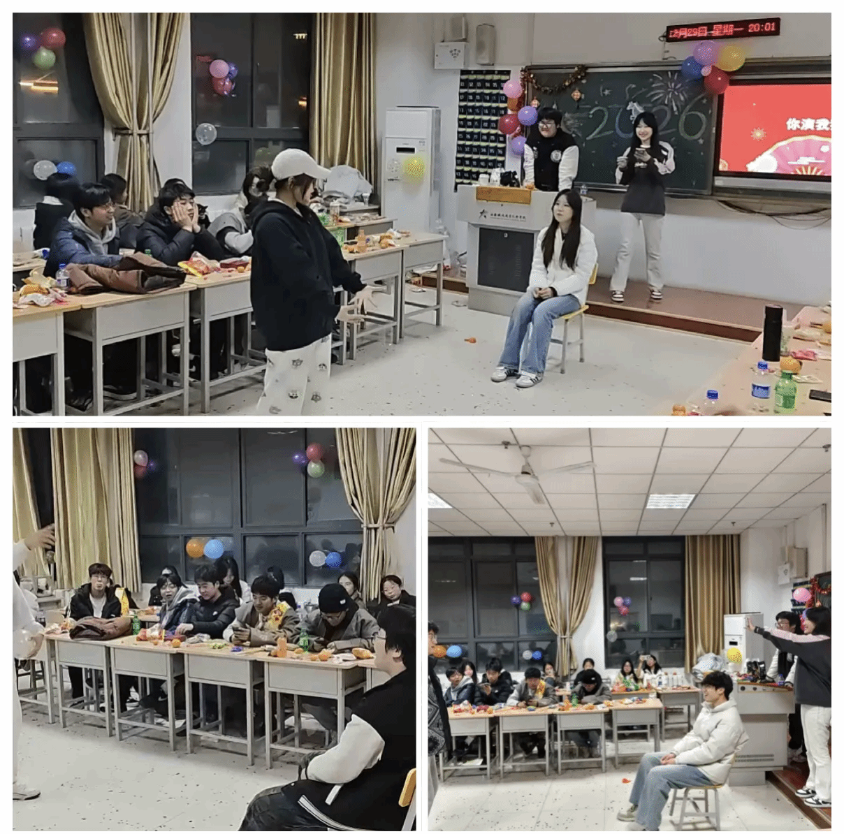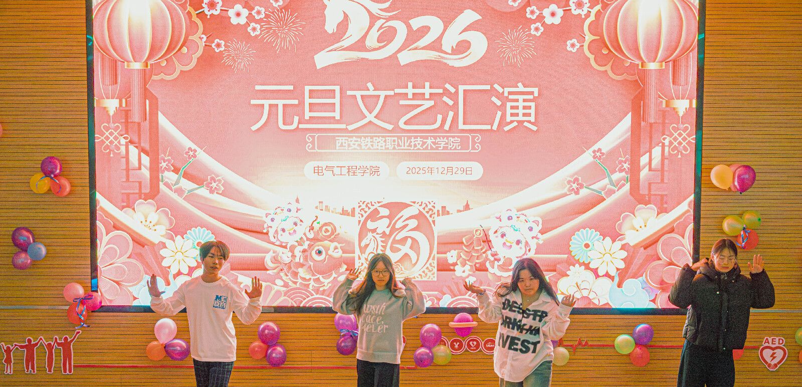 不光如此,我院各班级也开展形式多样的元旦联欢活动。教室里张灯结彩,暖意融融,同学们自编自导小品、歌曲串烧、乐器独奏等节目,在欢声笑语中互送新年祝福;部分班级还组织了“行业精神分享会”,同学们结合专业学习分享铁路电气领域榜样故事,在班级小舞台上传递匠心火种,为全院汇演的举办营造了热烈浓厚的迎新氛围。
