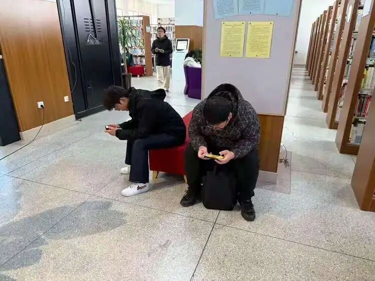 长椅上,三位年轻人并肩而坐,各自捧着书本安静阅读。他们之间没有交谈,却有一种默契的陪伴感。偶尔有人轻轻调整坐姿,或是低头做笔记,动作轻得不会打扰到身边的人。这种共享的安静,让图书馆成为一个既能独处又能感受到群体温暖的特殊空间。