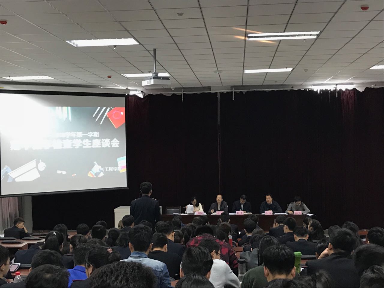 11月8日下午,电气工程学院在阶梯教室召开2017/2018学年第一学期期中教学检查学生座谈会。教务处处长滕勇、电气工程学院院长李栋、教务处教学科长贠晓晴、电气工程学院学工办主任马纪及各教研室主任和87名学生代表参加了座谈会。