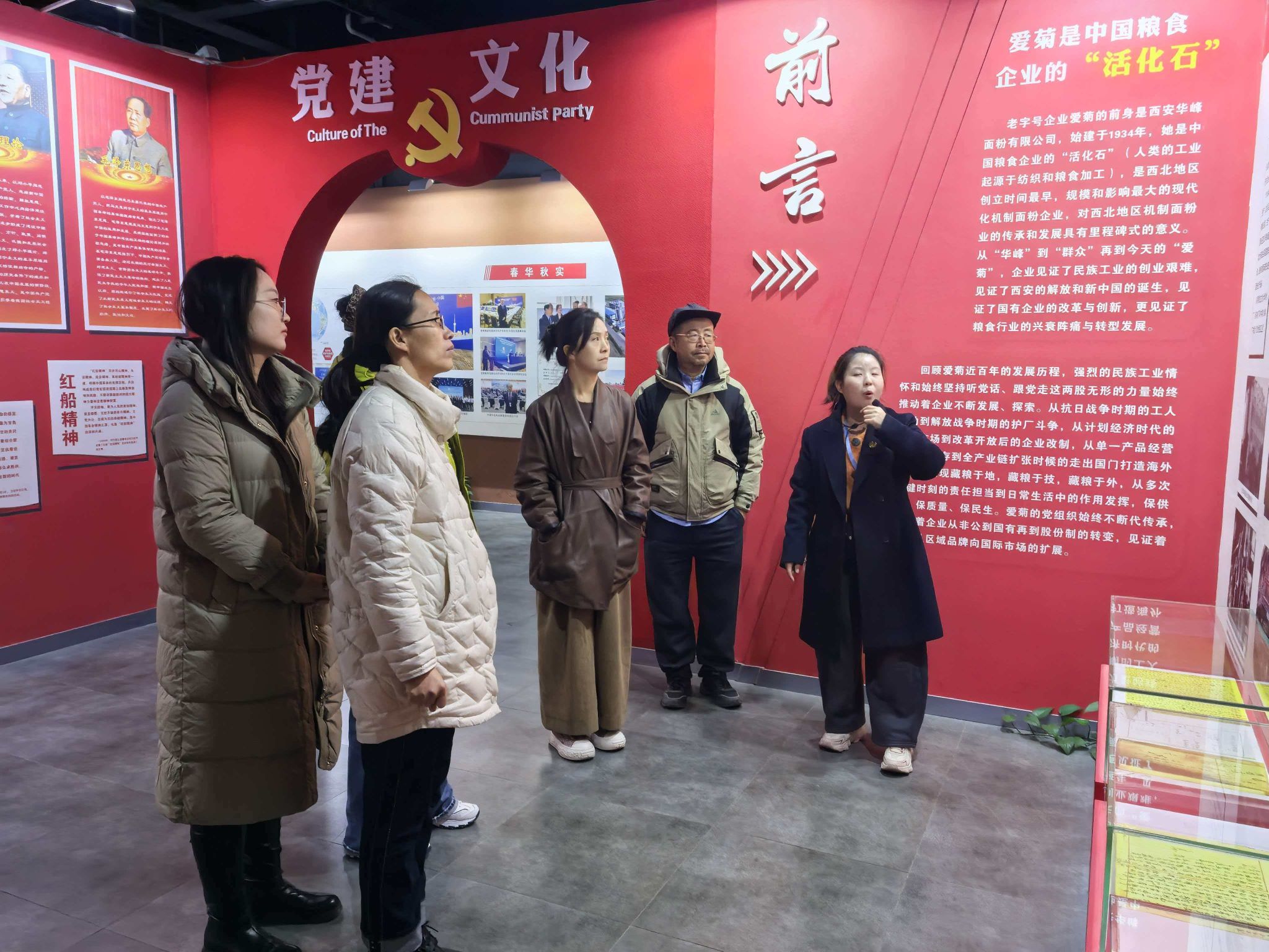 在基地讲解员的细致引导下,党员们依次参观党史学习教育展厅、党建成果展示区、红色文化长廊等特色展区。展厅内,一张张承载历史记忆的珍贵照片、一帧帧记录发展历程的详实文字、一件件见证奋斗足迹的实物展品,生动再现了党的百年奋斗征程,全方位展现了爱菊集团以党建引领企业高质量发展的丰硕成果。参观过程中,党员们不时驻足凝视、交流感悟,在沉浸式学习中接受了深刻的党性教育。